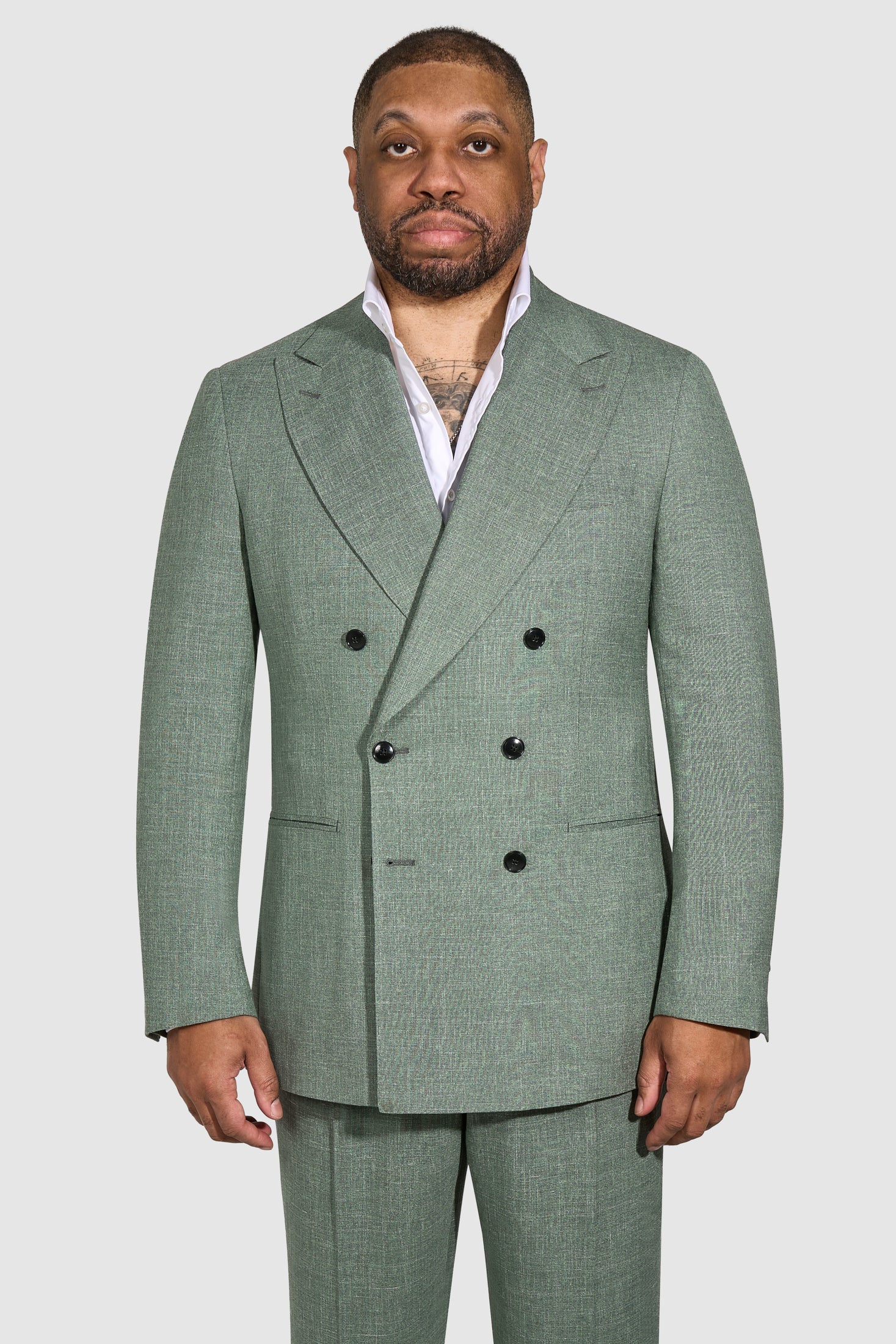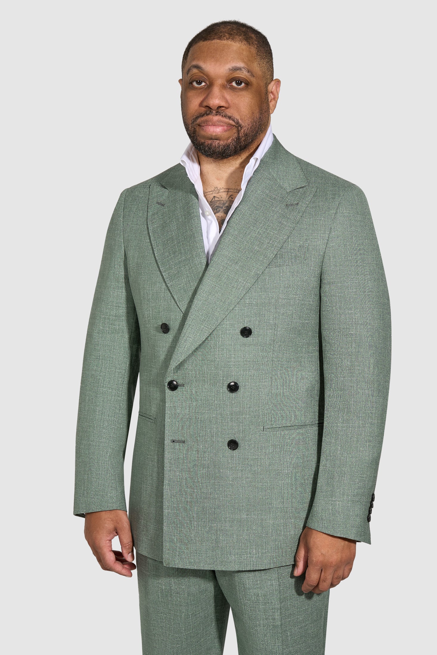 New SUITREVIEW Elmhurst Mint Green Wool, Silk Linen Loro Piana DB Suit - Size 38R and 42R (Other Sizes Made To Order)