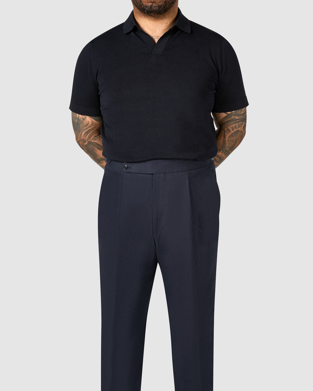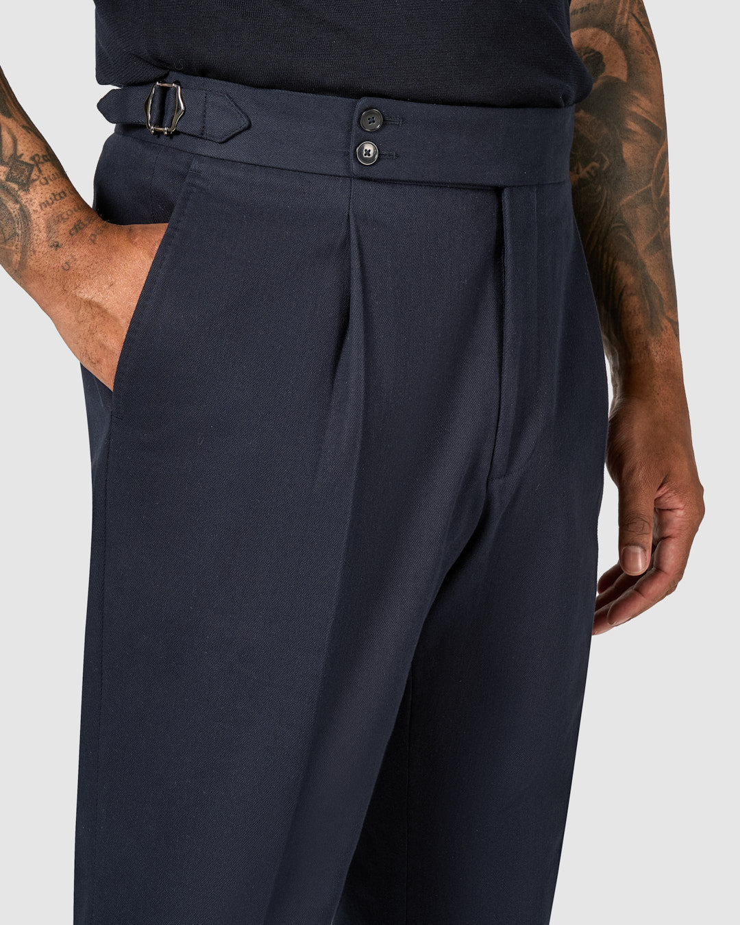 - High Rise Single Pleat Pants and Side Adjusters..