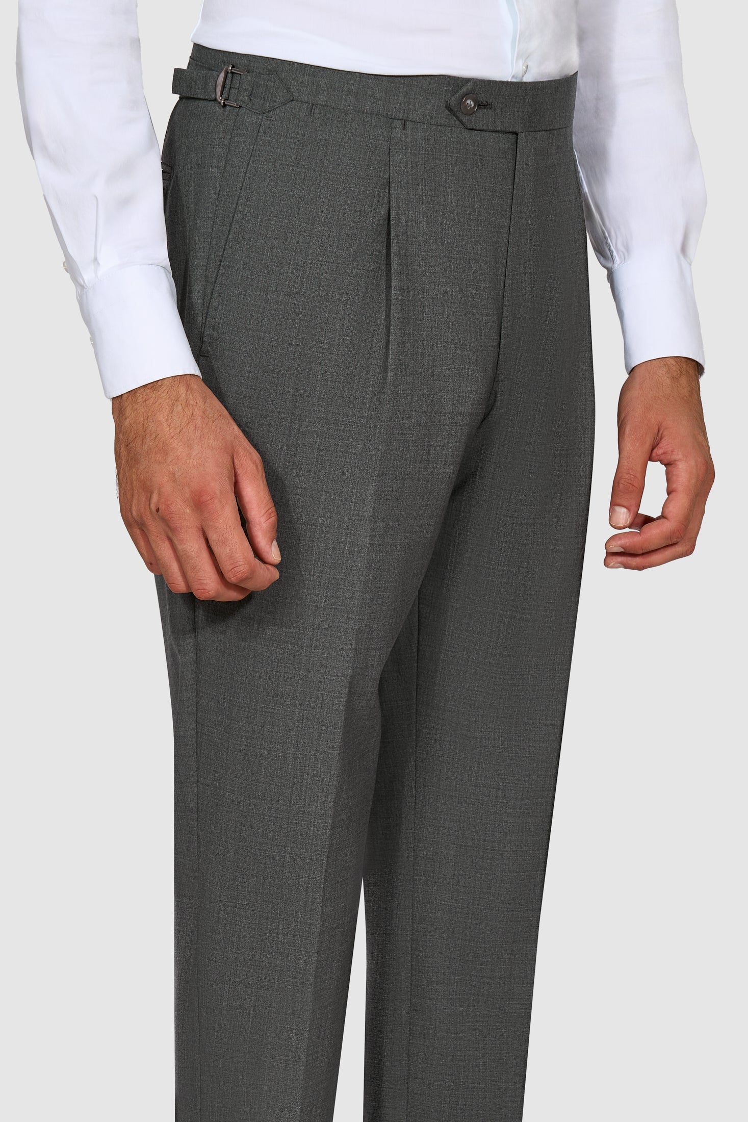 • Single Pleat High Rise Pants with Side Adjusters