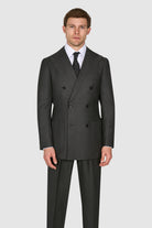 New Suitsupply Havana Dark Gray Wool and Mulberry Silk Herringbone Unlined DB Suit - Size 36R and 44L