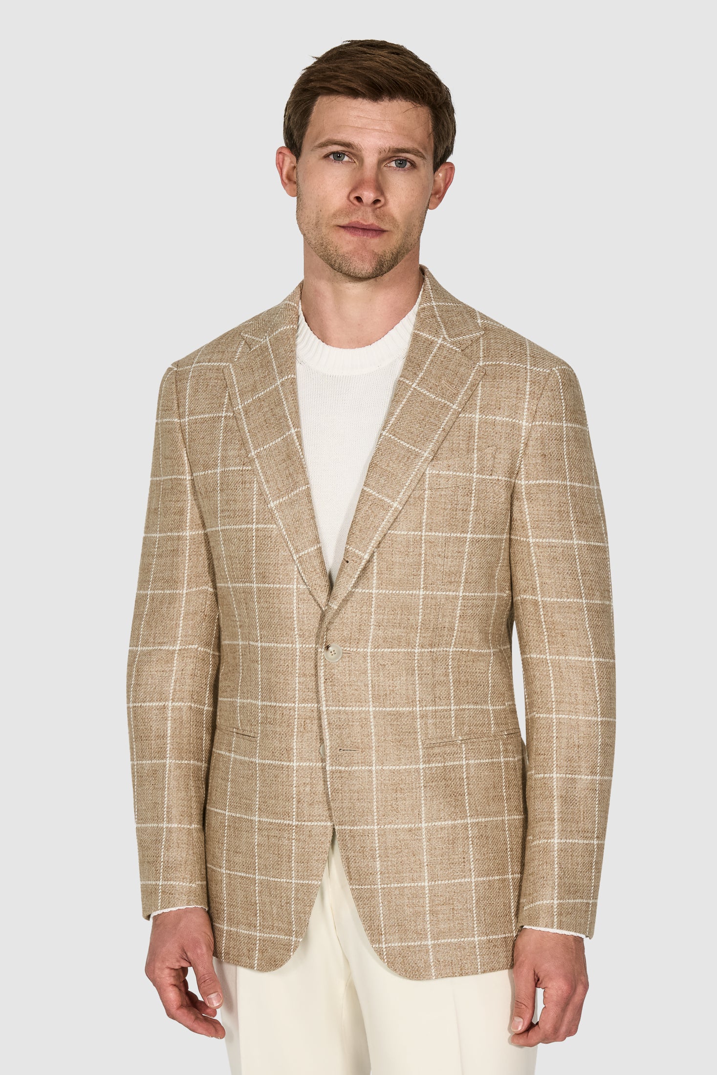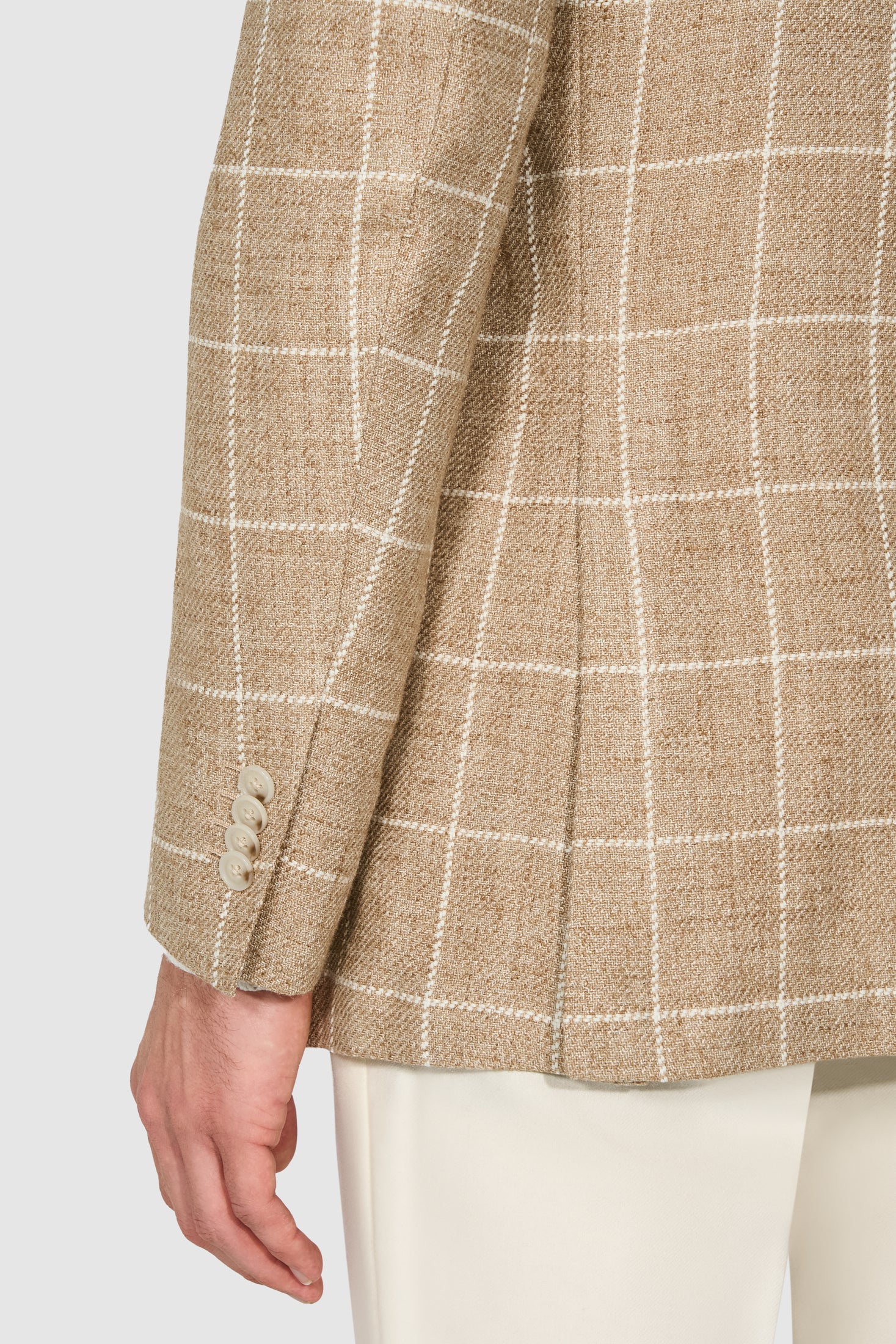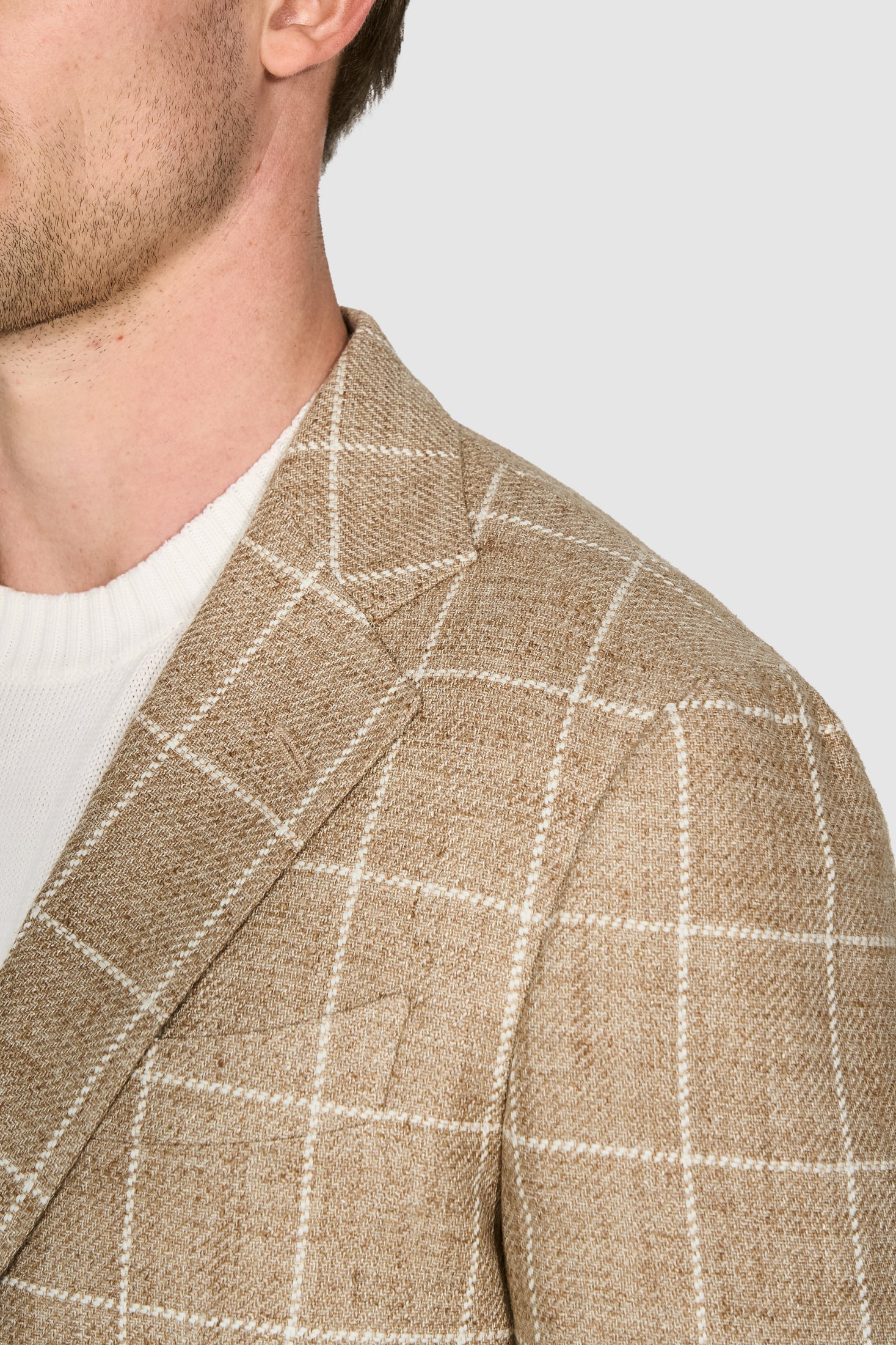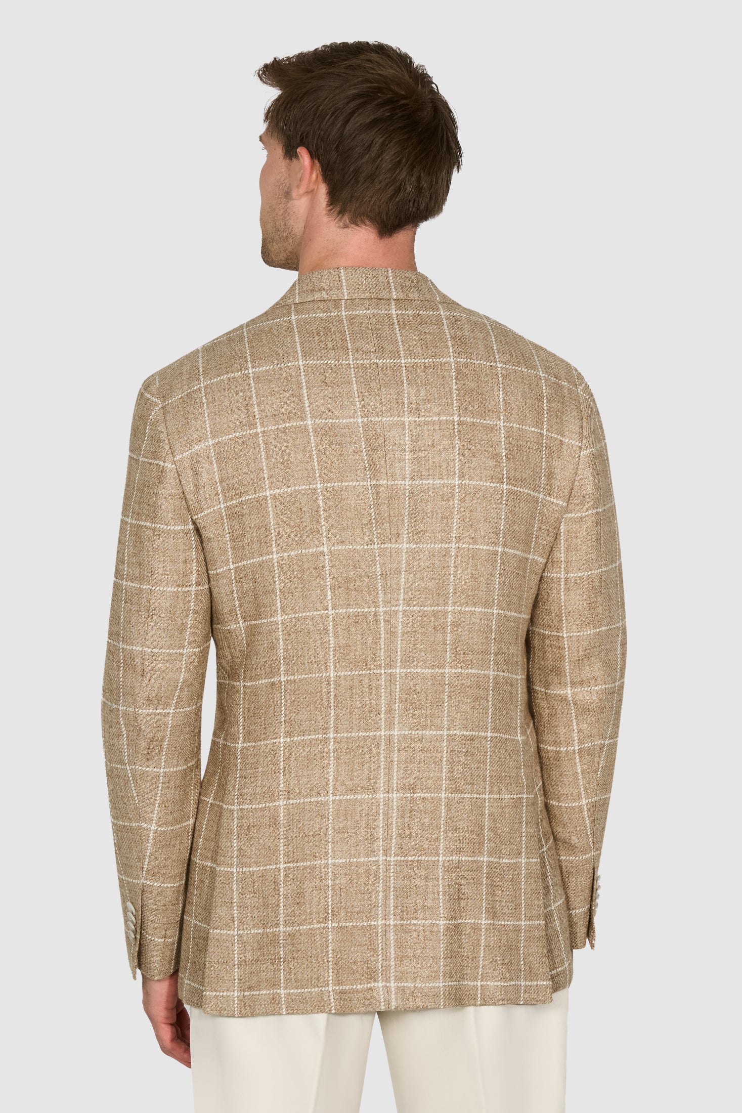 New Suitsupply Havana Mid Brown Check Linen, Tussah Silk, Cotton Ferla Blazer - Size 38R and 44S