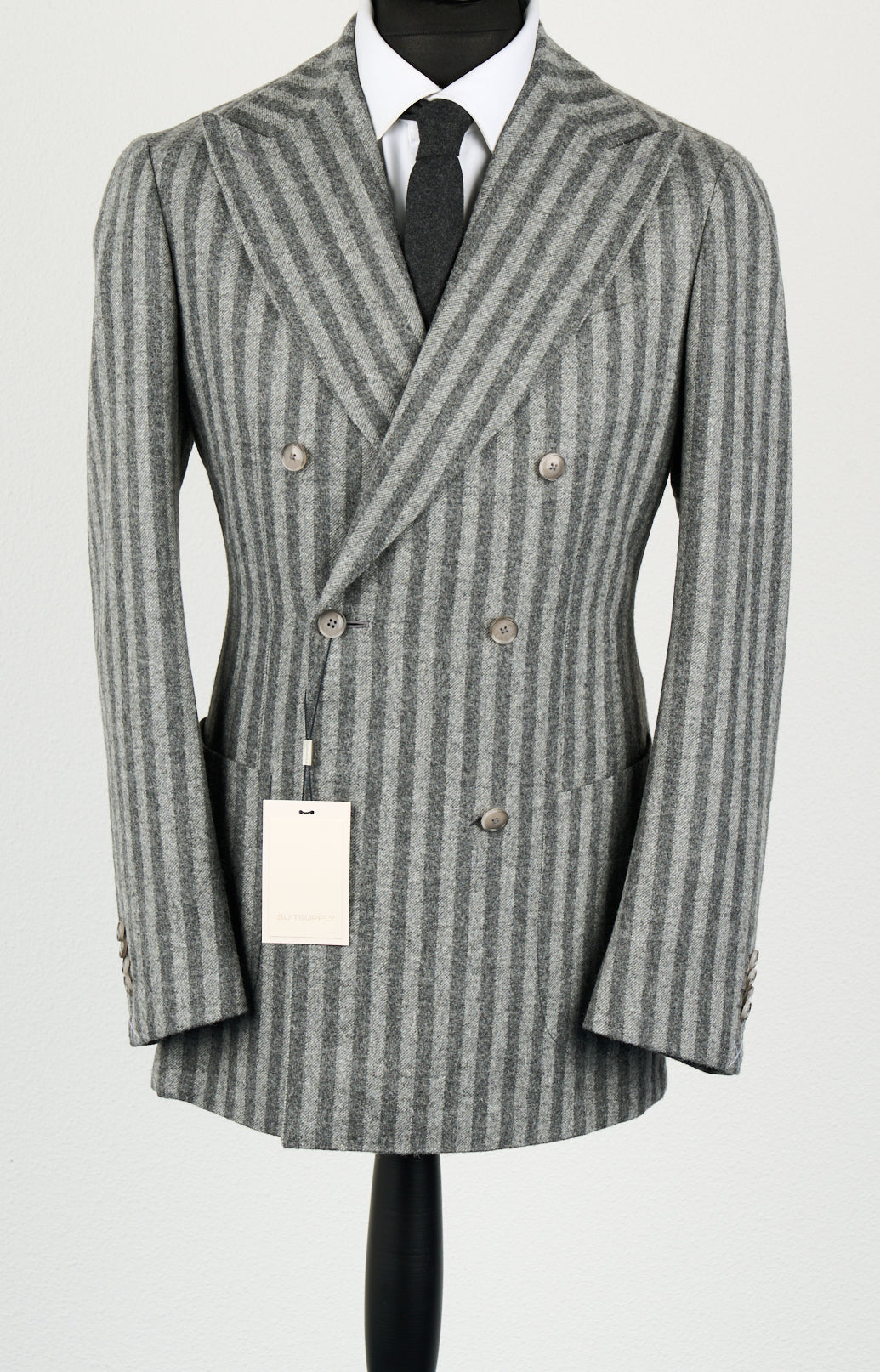 New Suitsupply Havana Mid Gray Stripe Alpaca and Wool DB Suit - Size 38S