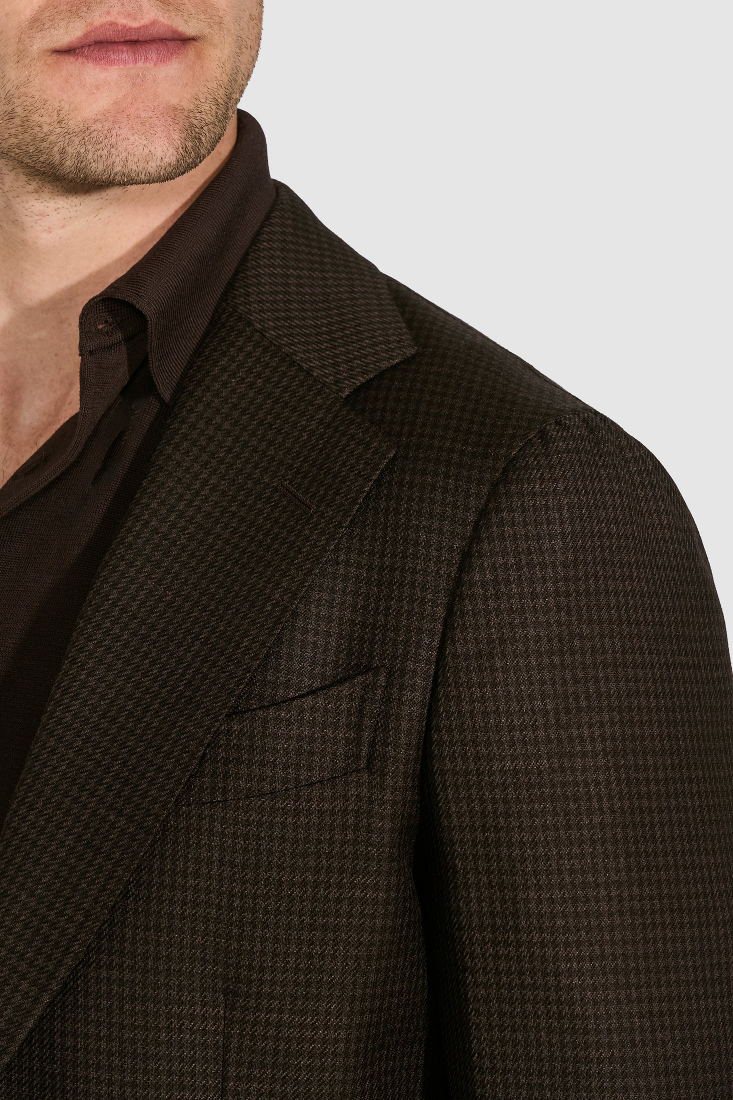 New Suitsupply Havana Tulip Dark Brown Houndstooth Wool and Mohair Blazer - Size 38R