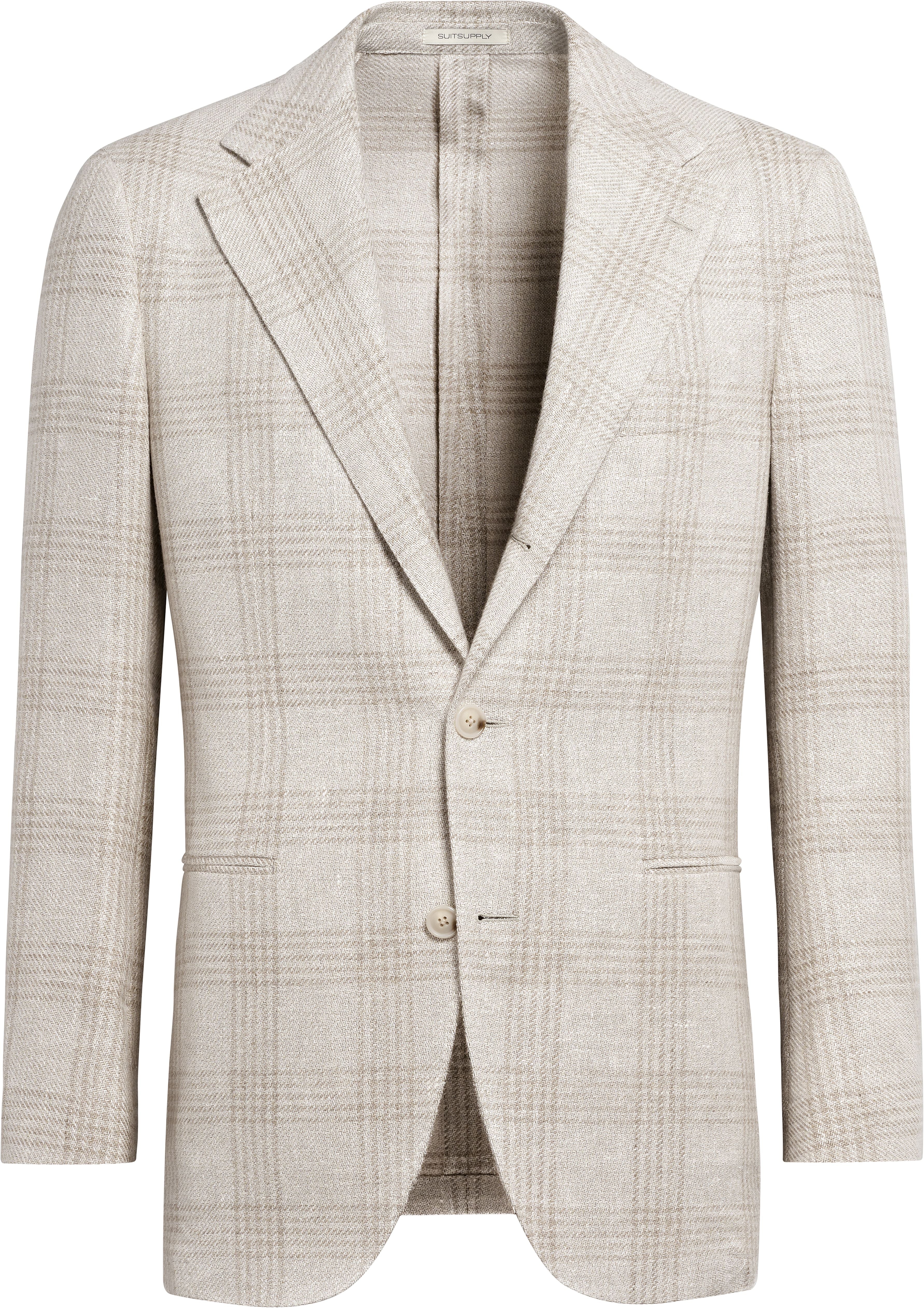 Suitsupply Roma Light Taupe Check Linen, Silk, Wool, Cotton Relaxed Ferla Blazer - Many Sizes Available