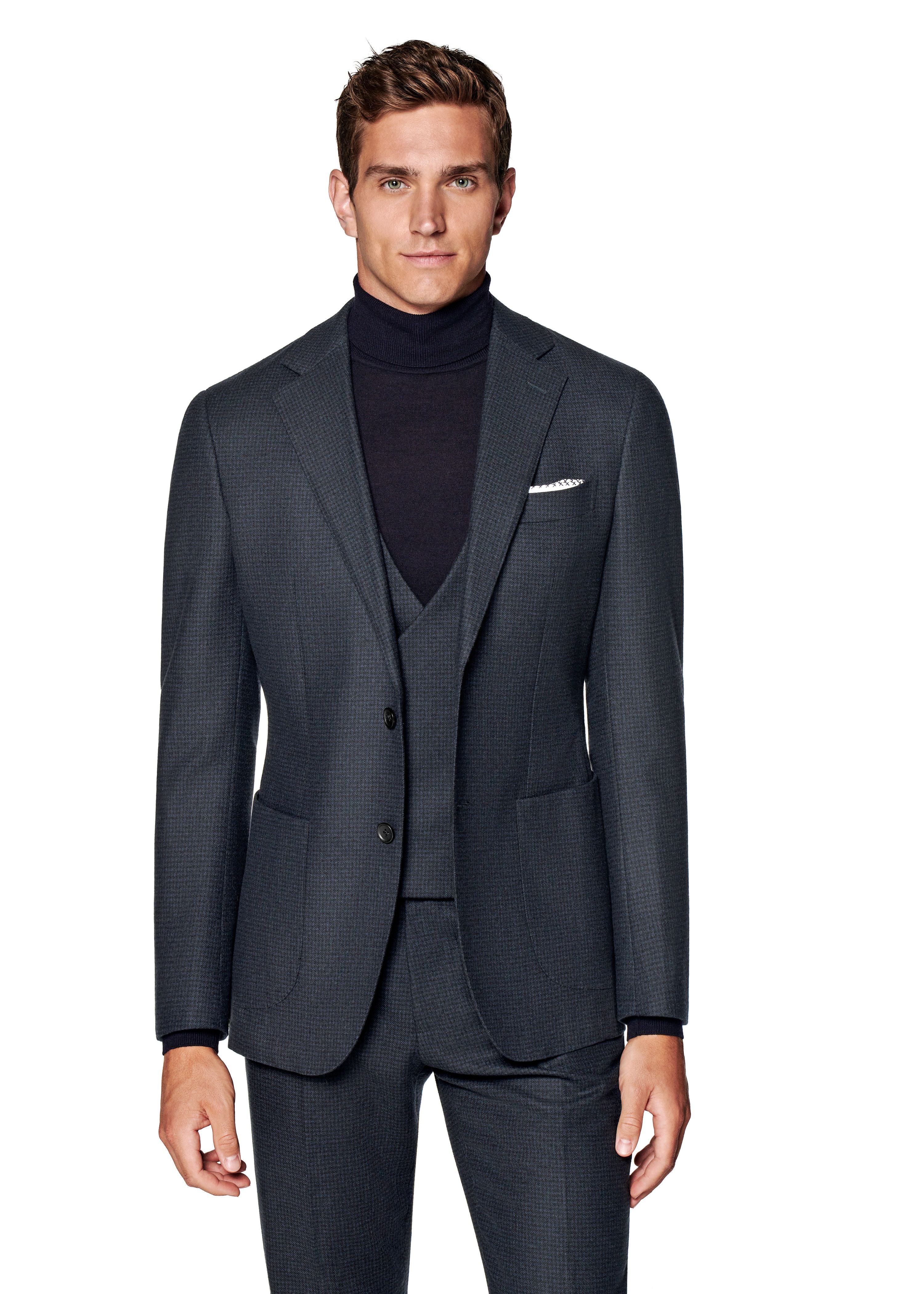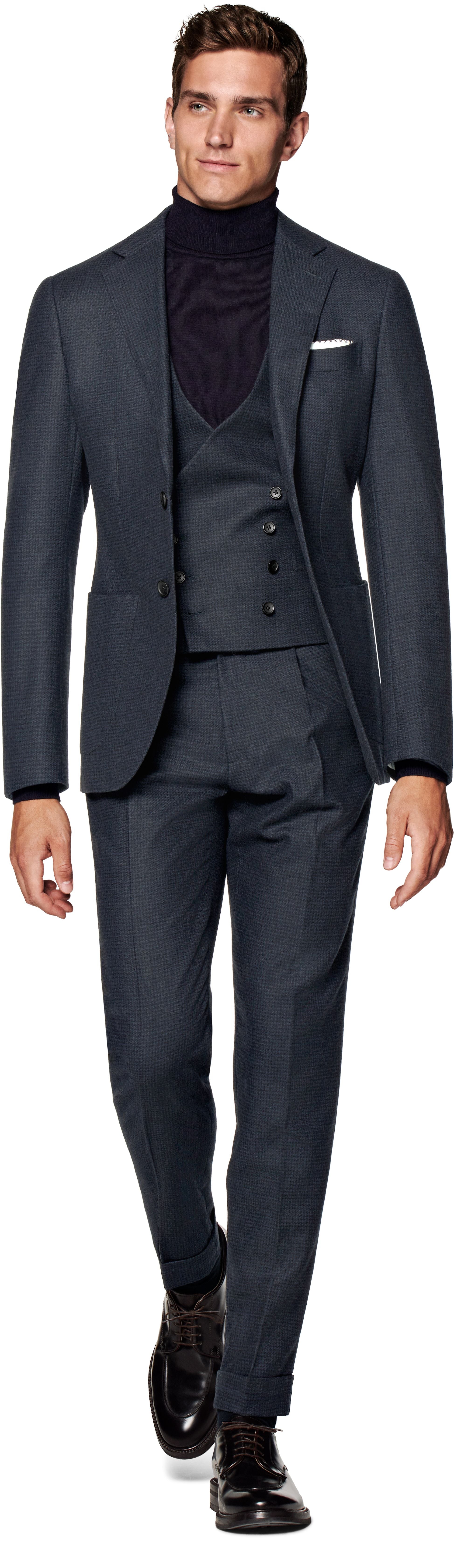 New Suitsupply Havana Blue Houndstooth Wool and Cashmere Suit - Size 36S, 36R, 38S, 38R, 42R, 42L, 46R