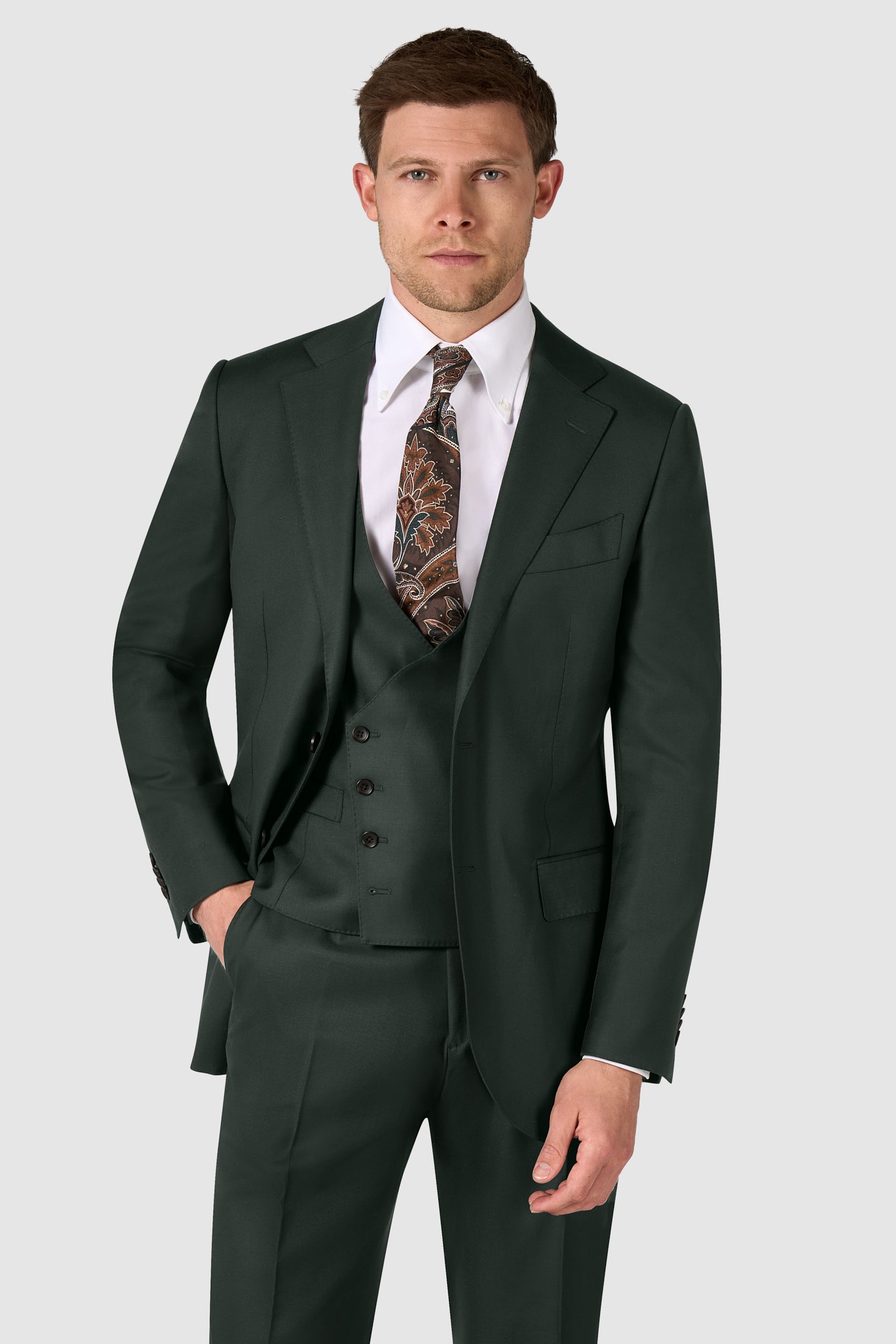 New Suitsupply Lazio Green Pure Wool All Season Super 110s DB 3 Piece Suit - Size 46L