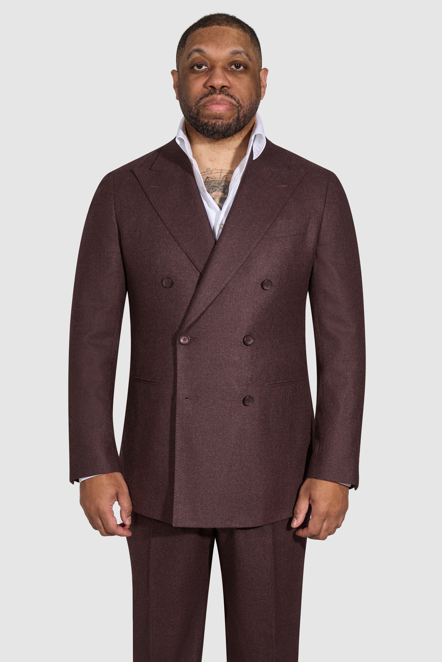 SUITREVIEW Elmhurst Bordeaux Pure Wool Flannel Loro Piana DB Suit - Size 38R and 42R