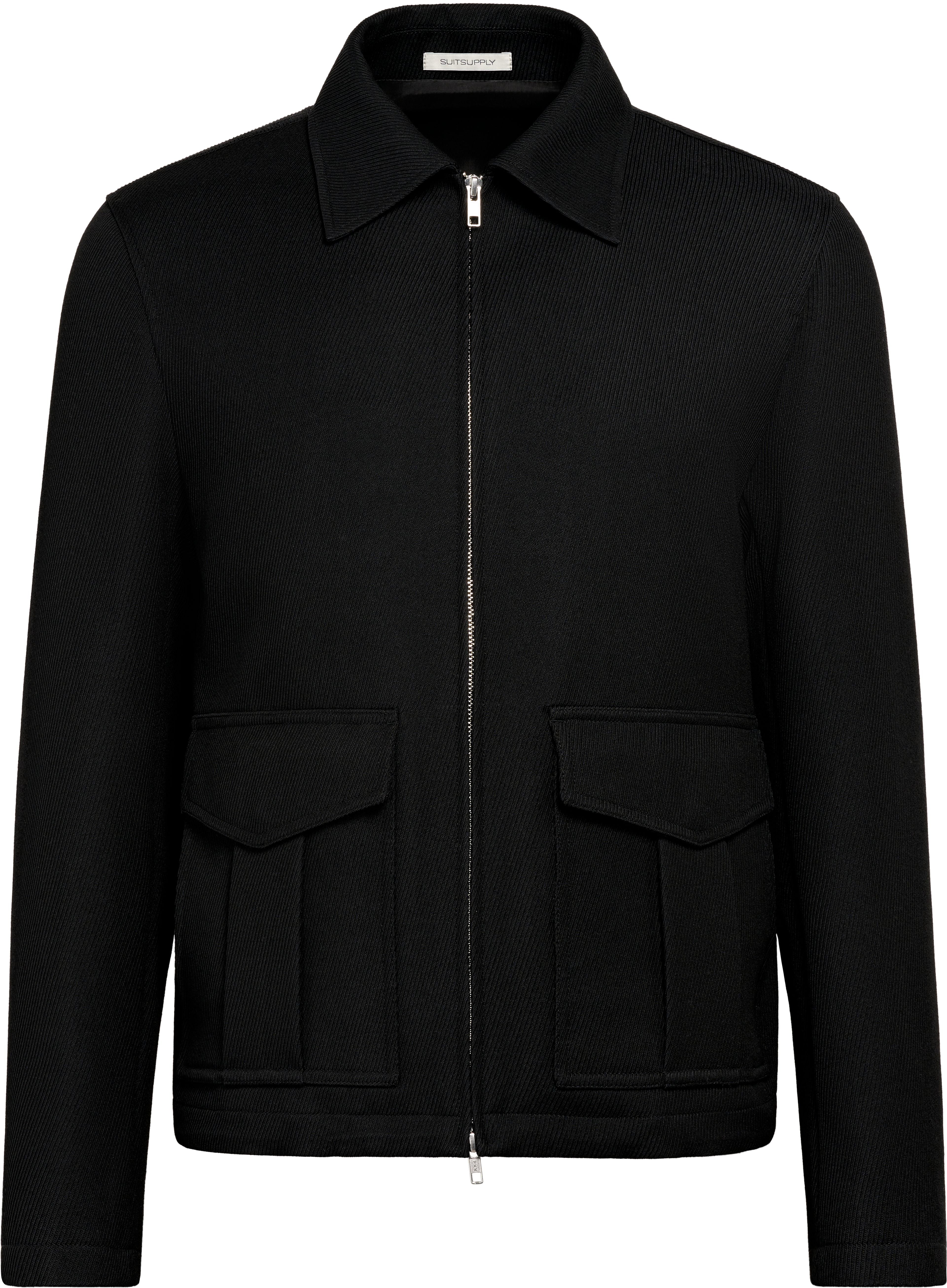 New Suitsupply Winston Black Wool Blend Bomber Jacket - Size 42R