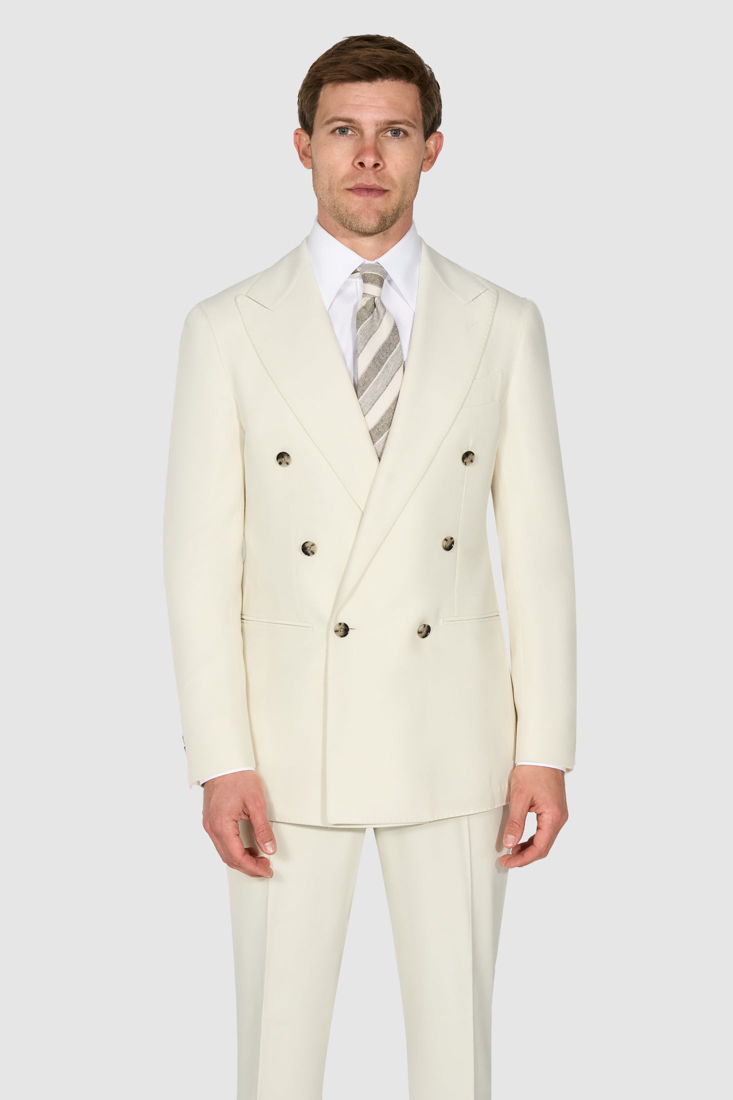 New Suitsupply Havana Off White Pure Circular Wool Flannel Low Button DB Suit - Size 38R