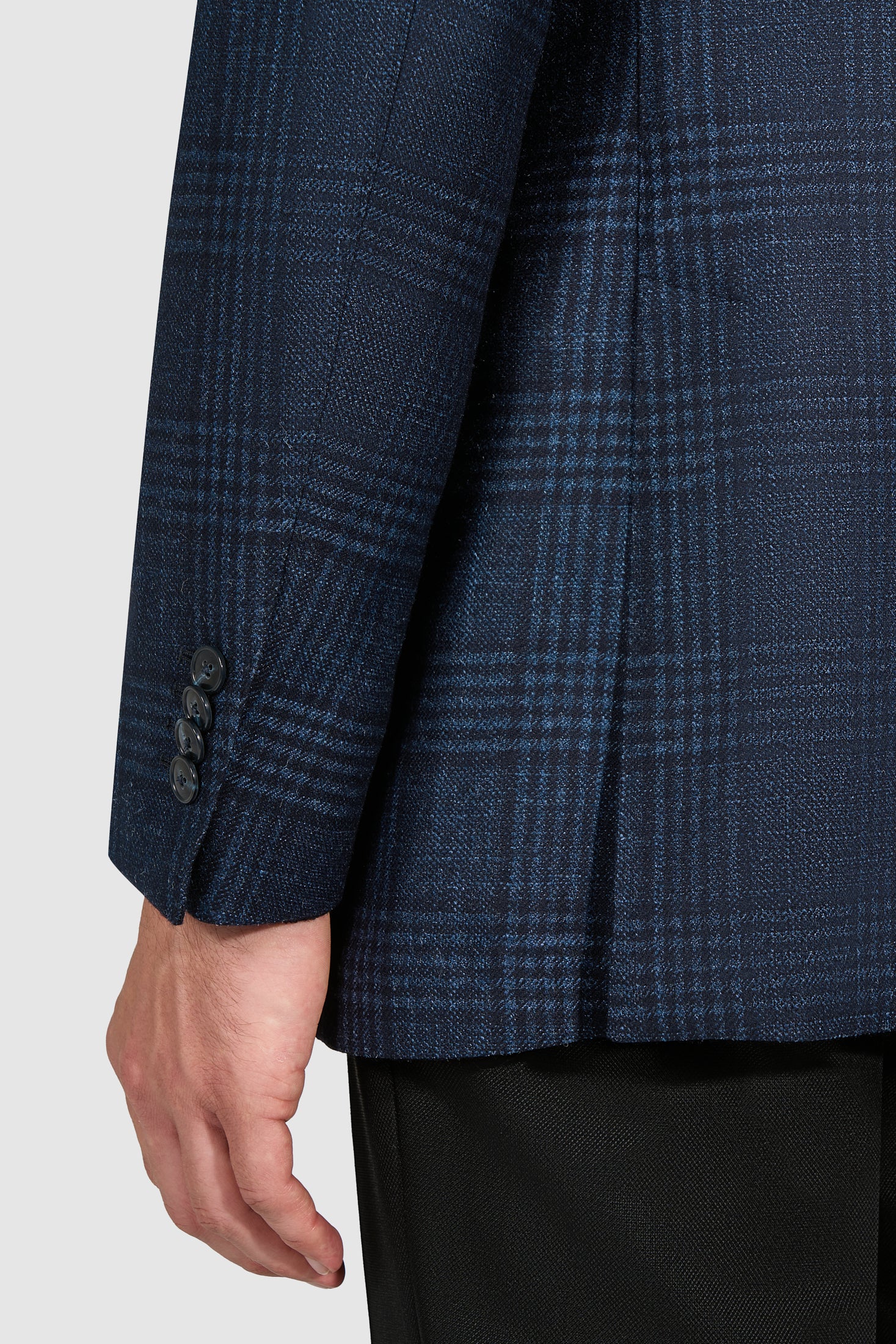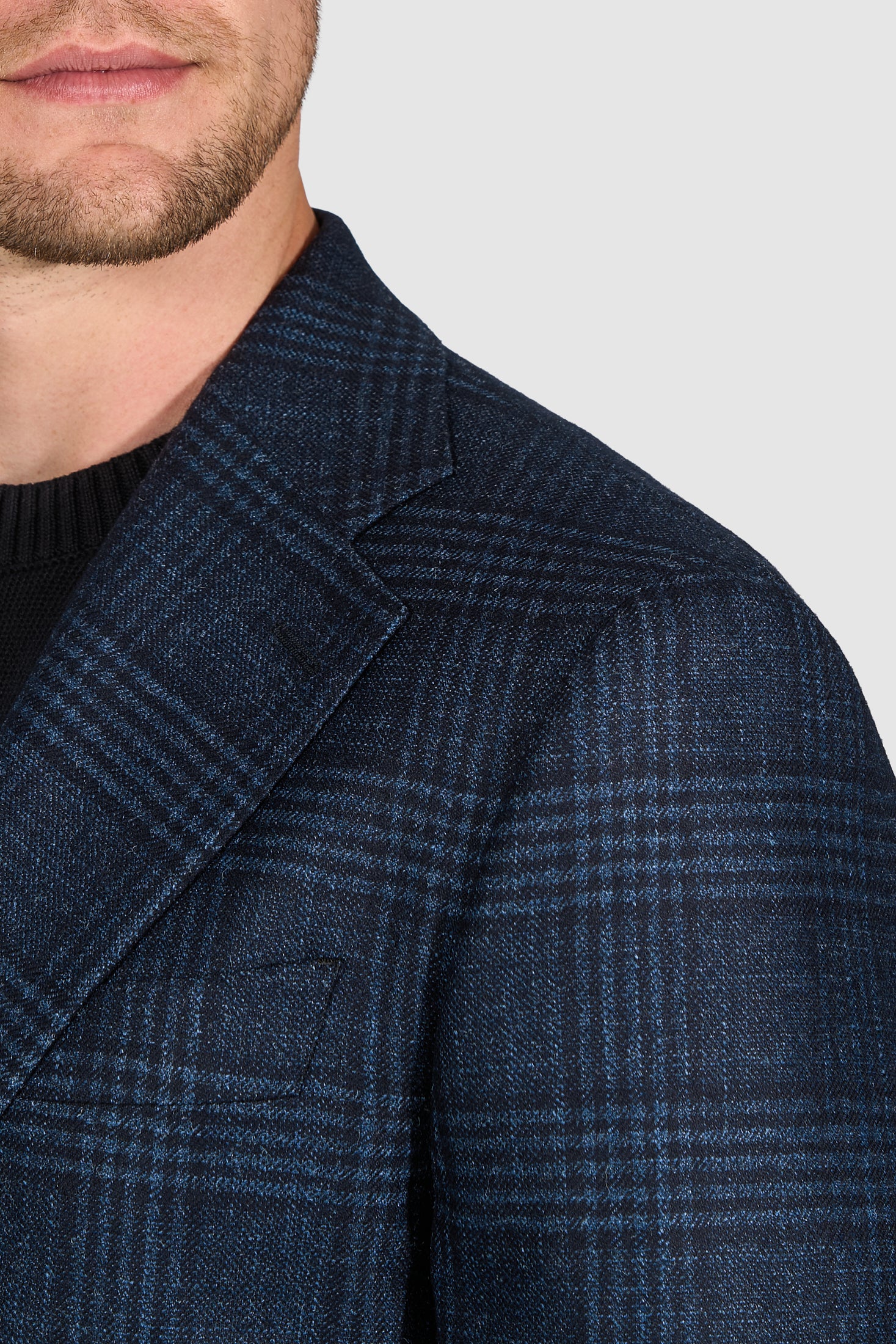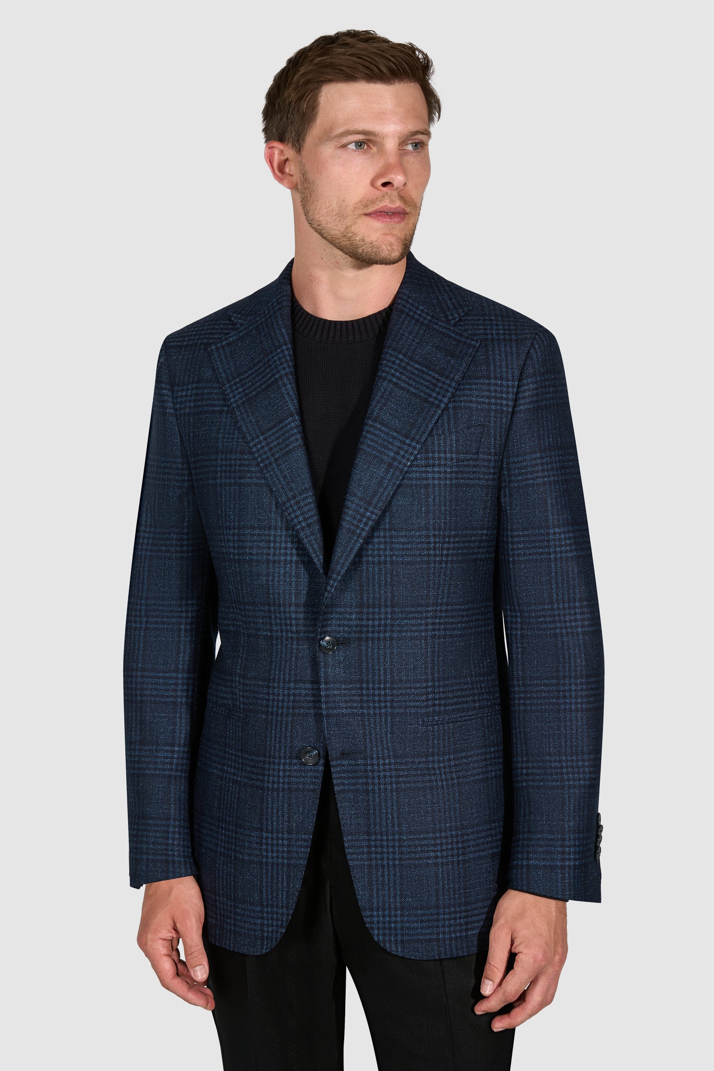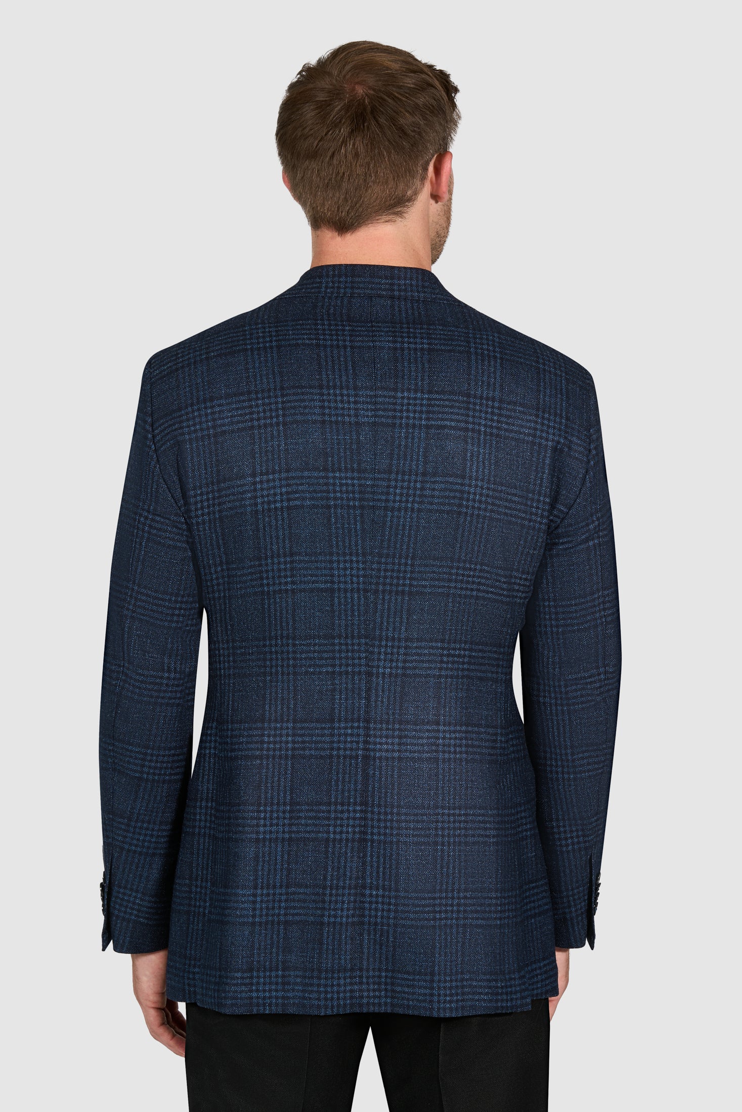 New SUITREVIEW Elmhurst Dark Blue Check Wool, Silk, Light Cashmere Blazer - Size 48, 52, 27, 54 (Other Sizes Made To Order)