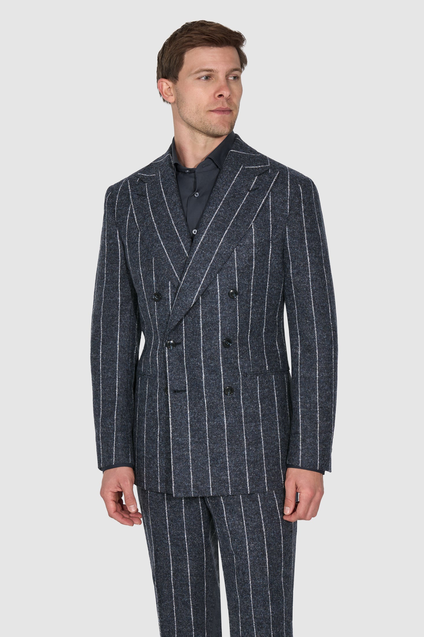 - Jetted Pockets with Wide Peak Lapels