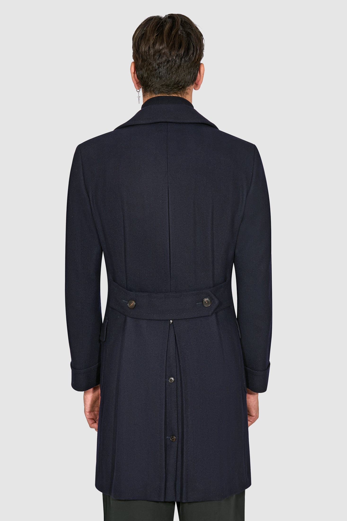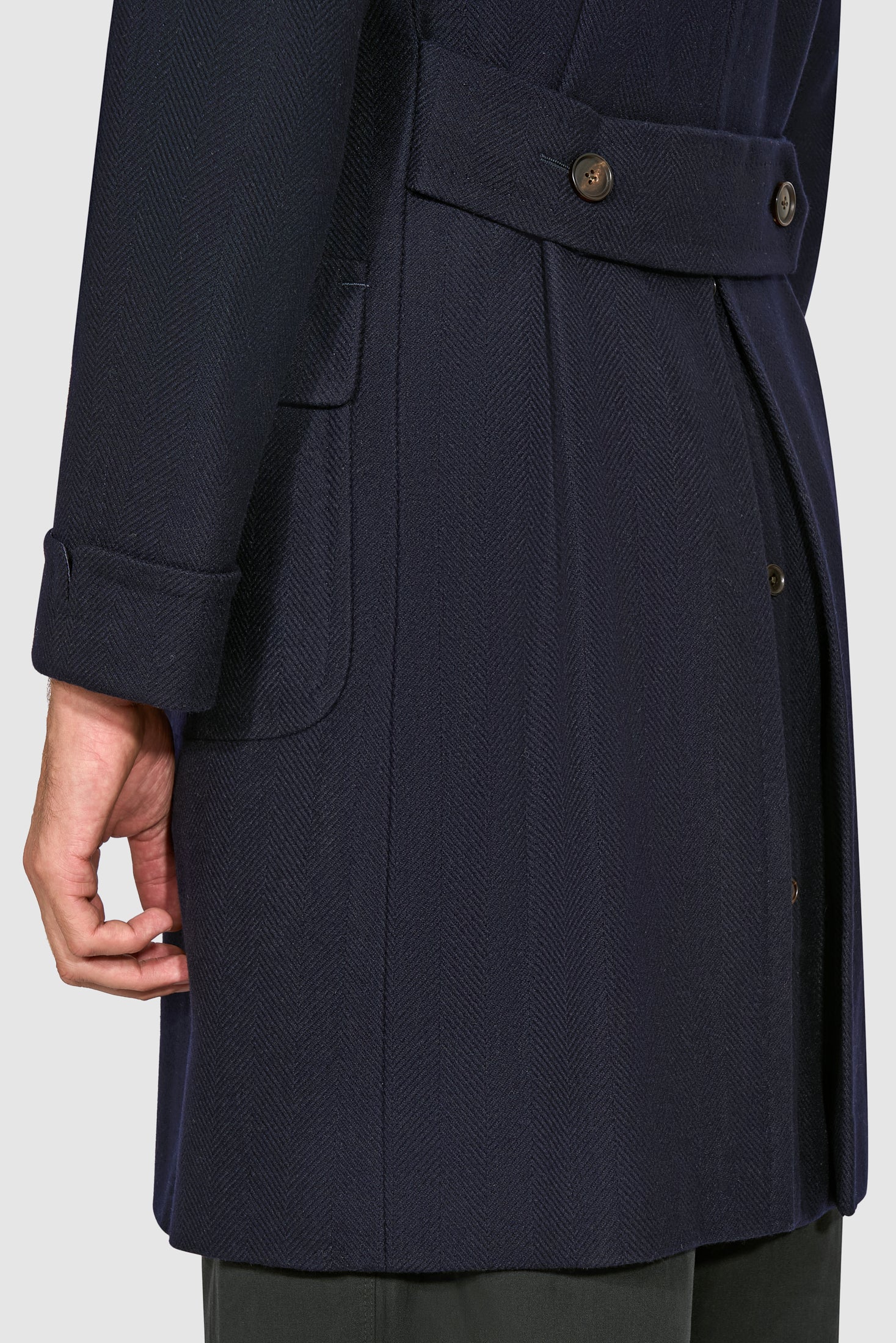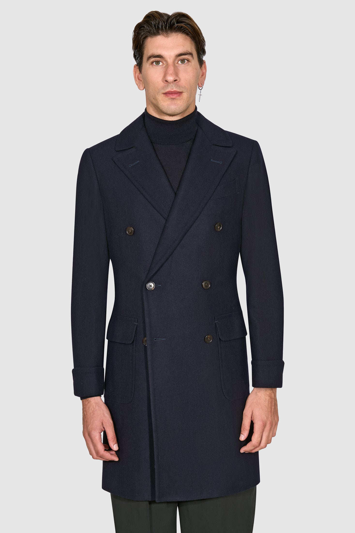 New SUITSUPPLY Merano Navy Herringbone Wool and Cashmere Polo Coat - Size 46