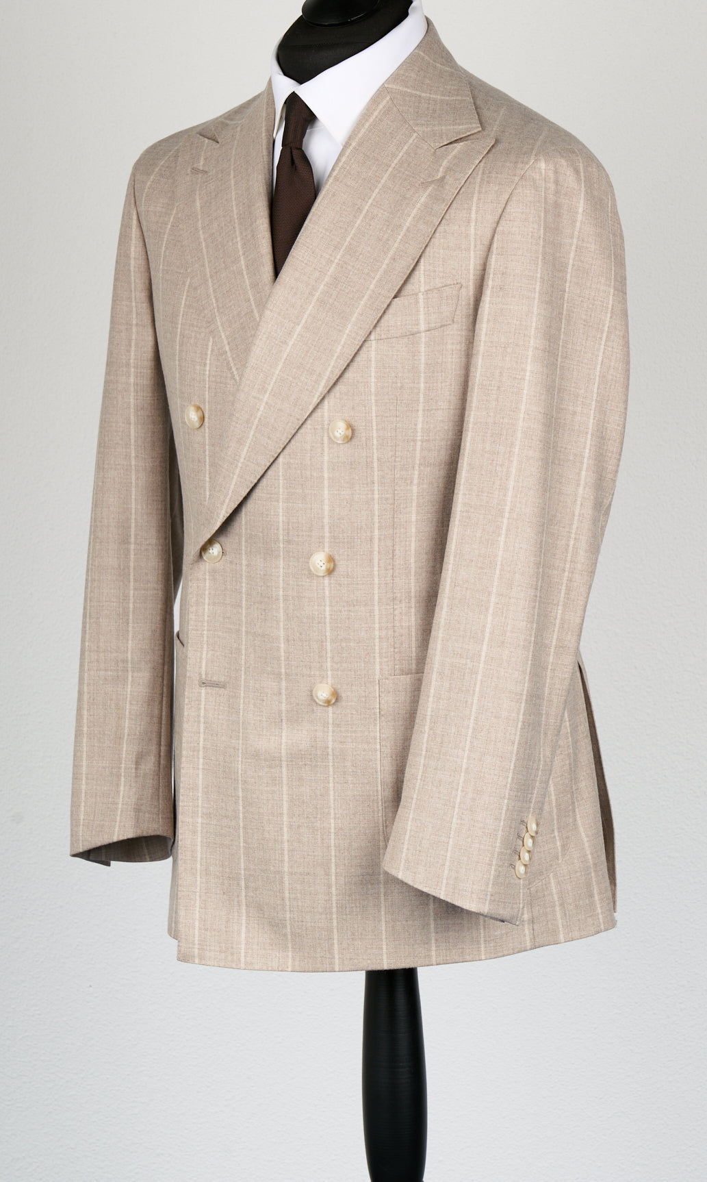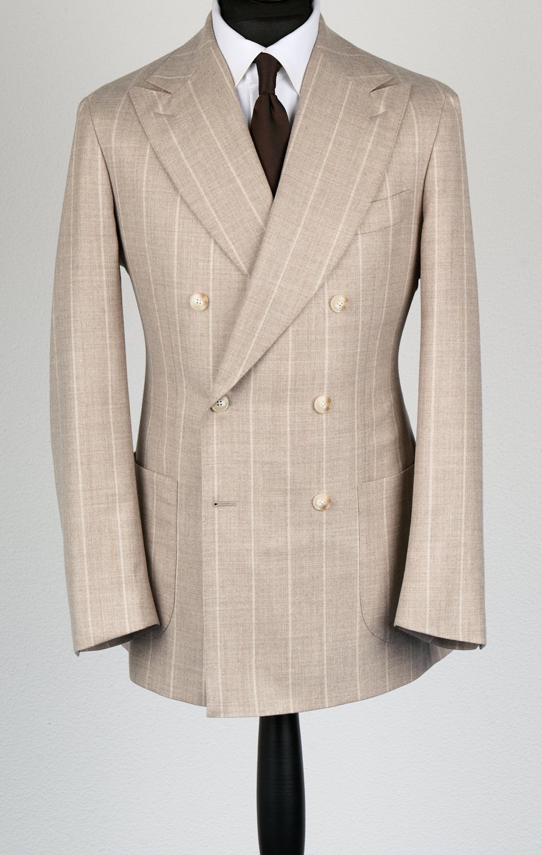New SUITREVIEW Elmhurst Oatmeal Stripe Pure Wool Loro Piana DB Suit - Size 52