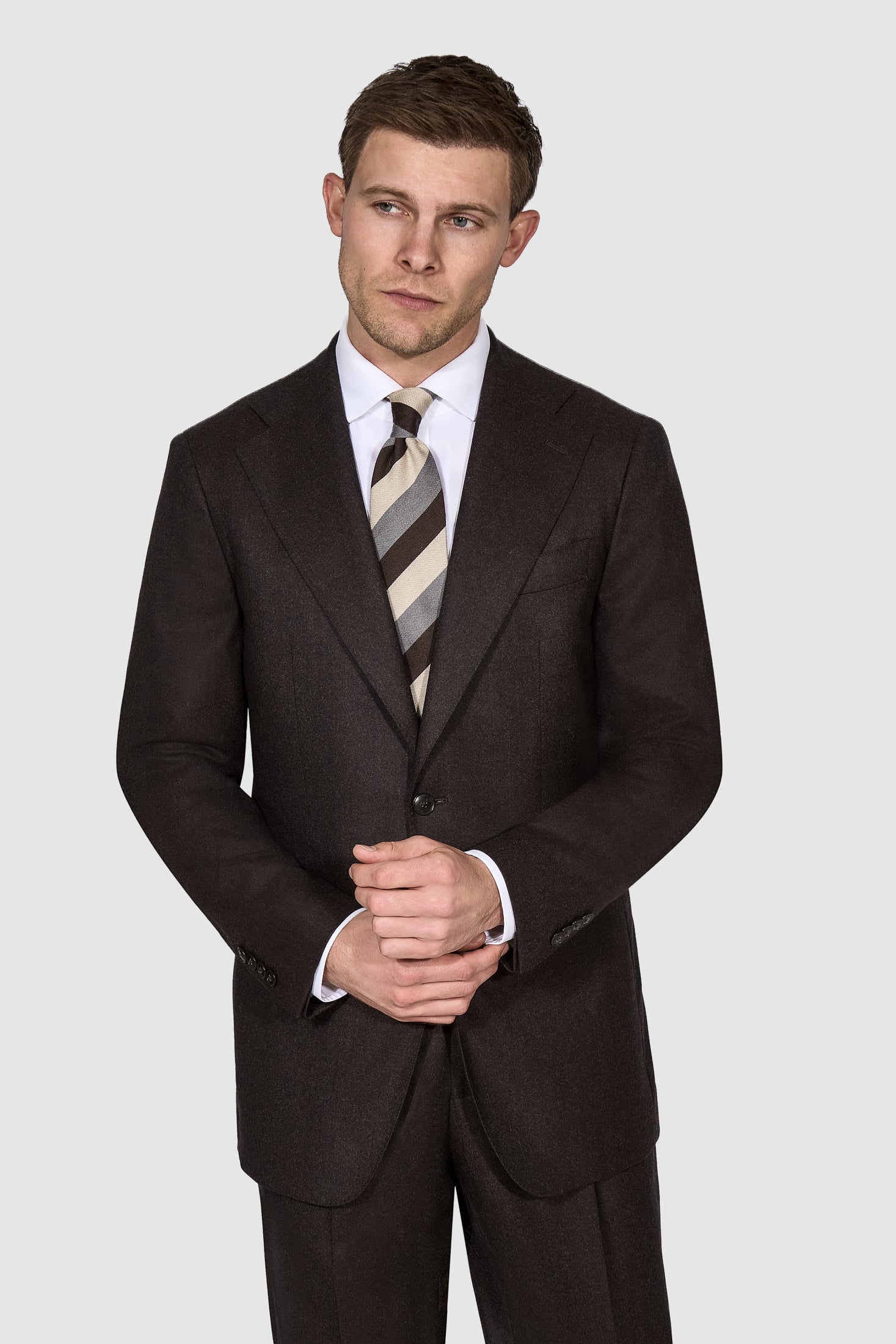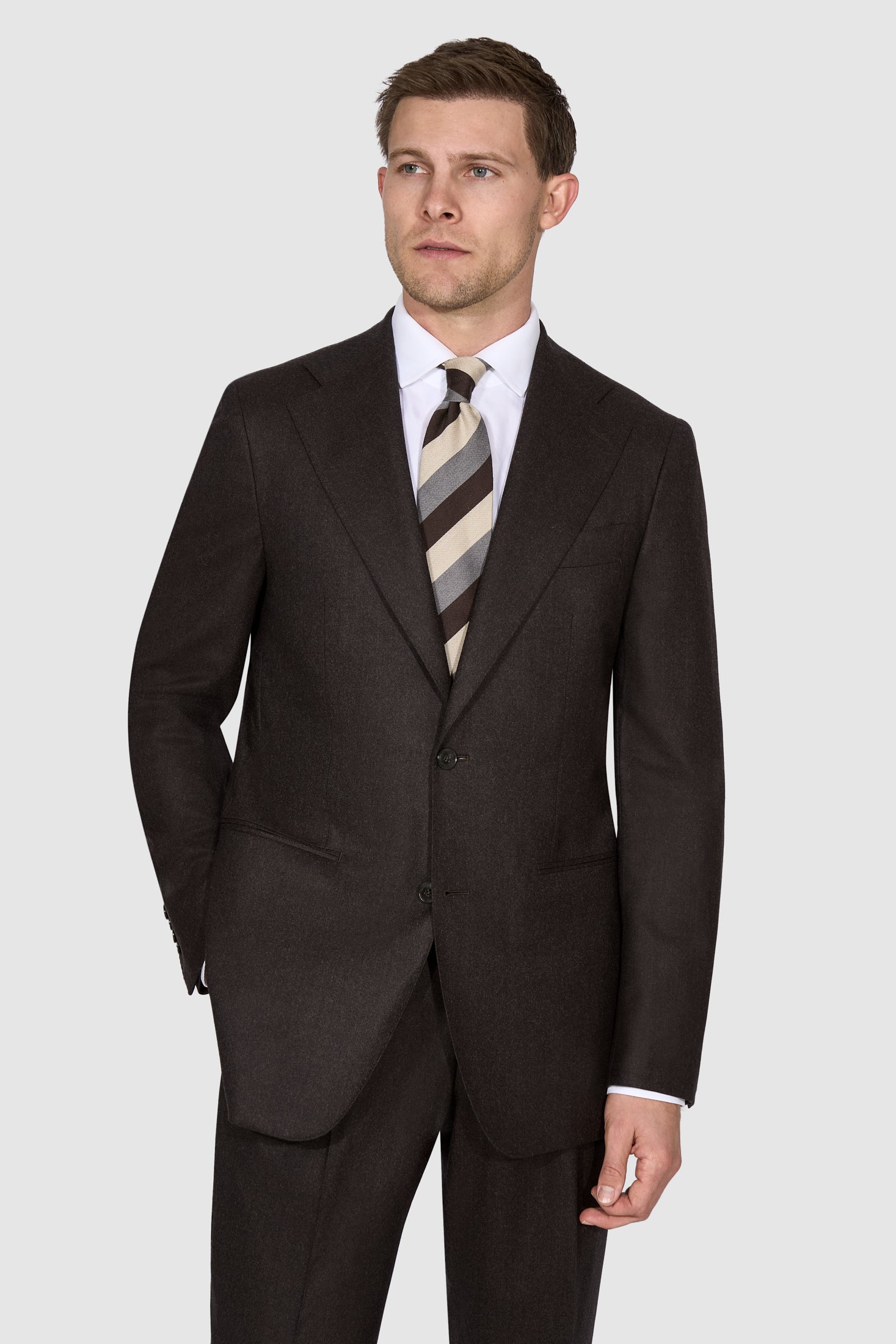 New SUITREVIEW Elmhurst Dark Brown Supersonic Light Flannel Suit - Size 46R and 54R