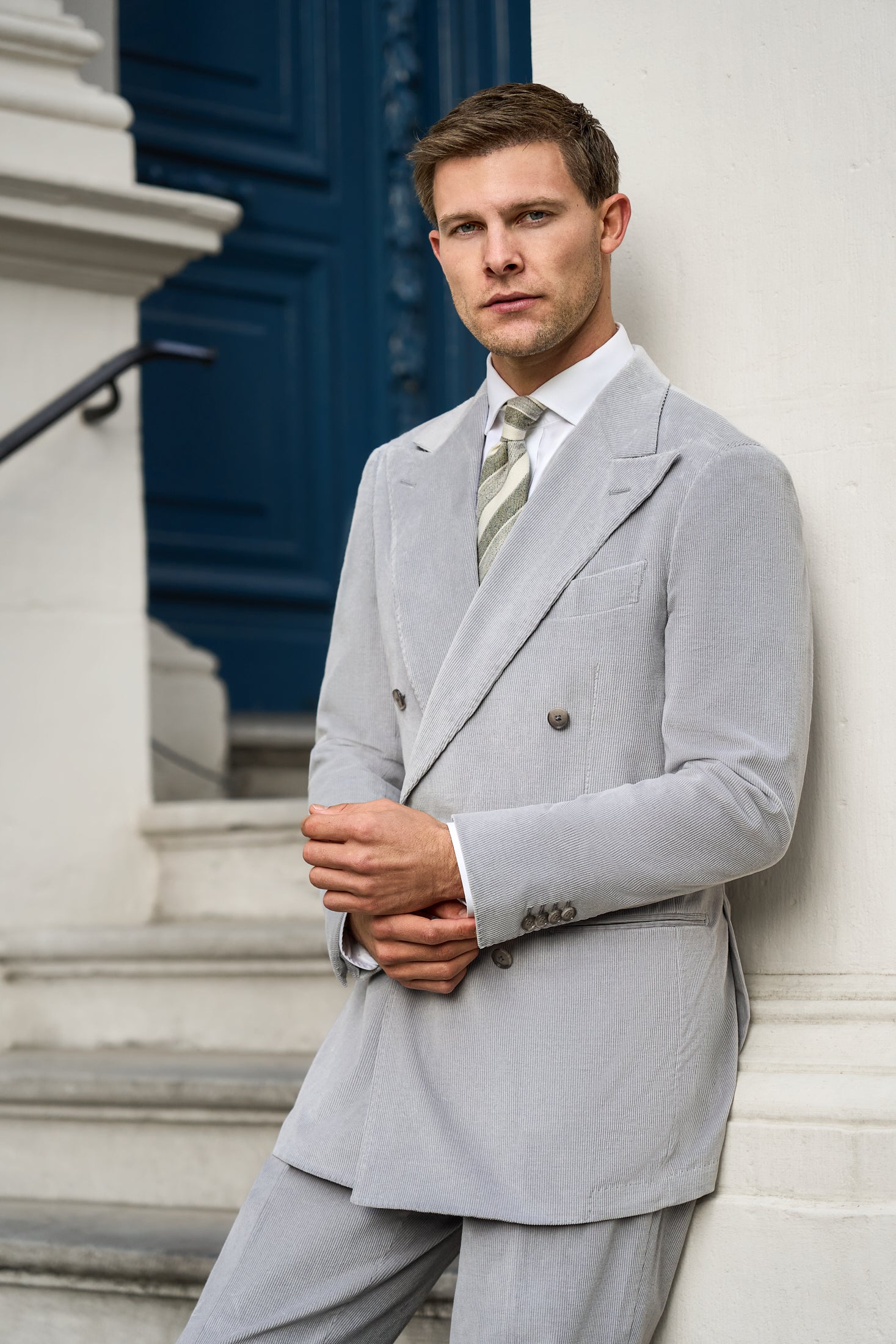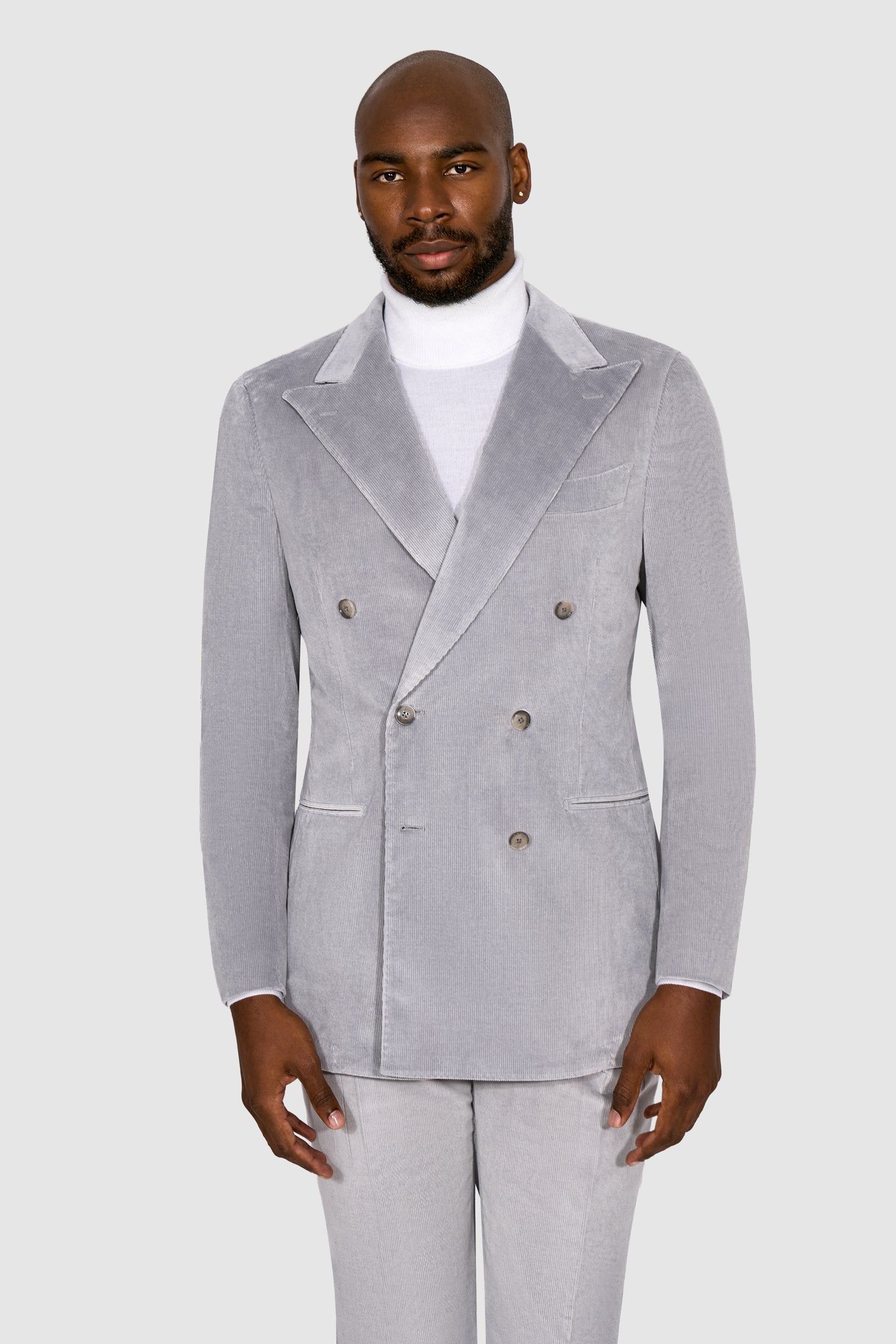 New Suitsupply Havana Light Gray Corduroy Cotton Cashmere DB Suit - Size 40S (Final Sale)