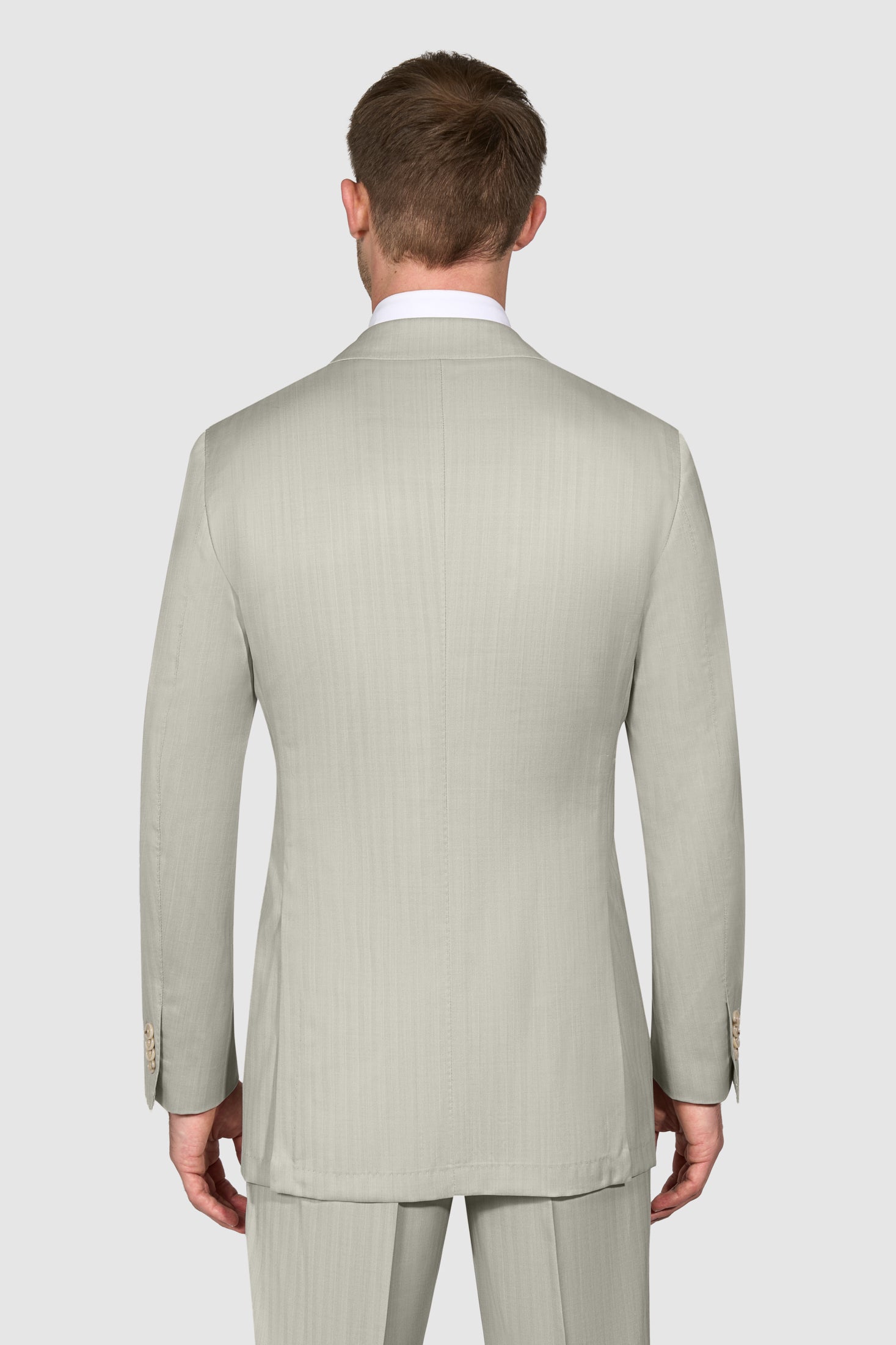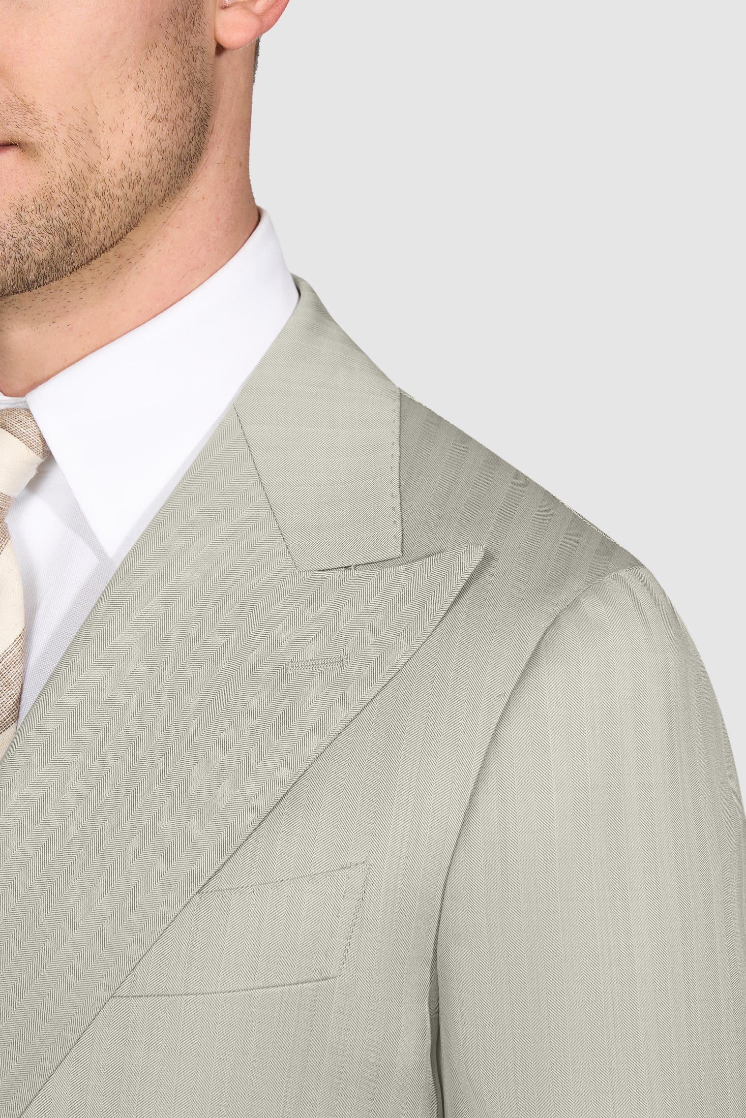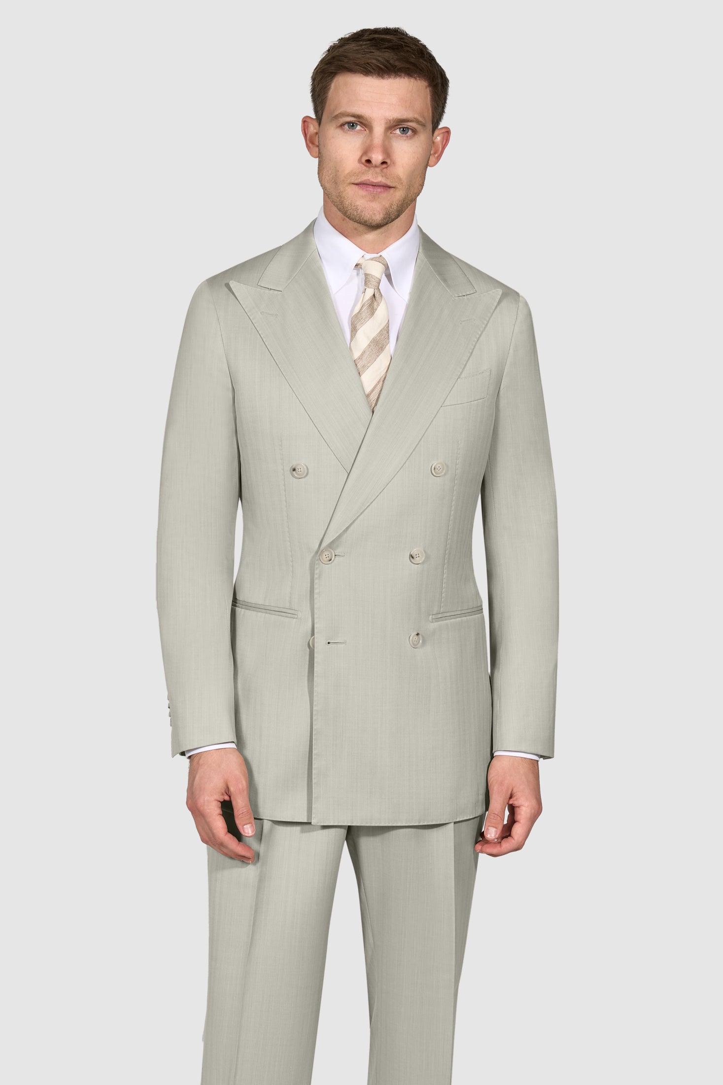 New Suitsupply Havana Sand Herringbone Wool and Silk DB Suit - Size 44R (Duca Pants) (Final Sale)